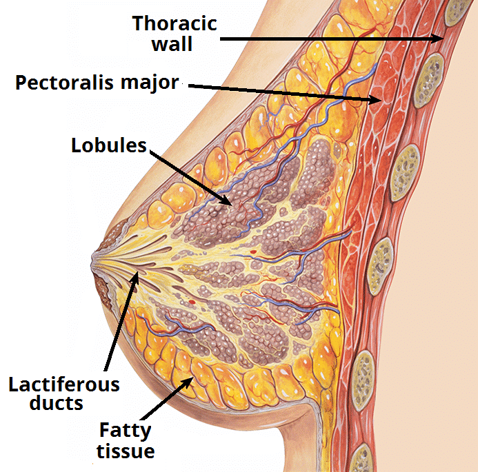 Galactorrhoea is defined as is defined as copious, bilateral, multi-ductal, milky discharge, not associated with pregnancy or lactation. Galactorrhoea occurs almost exclusively in females and most commonly in adults, however rarely may be seen in male infants secondary to maternal oestrogen exposure. In postpartum females, this also includes milk production occurring 6-12 months after pregnancy and the cessation of breastfeeding By Patrick J. Lynch, medical illustrator [CC BY 3.0], via Wikimedia Commons Figure 1The internal structure of the breast Lactation Physiology Lactation is predominantly regulated by the hormone prolactin, a polypeptide hormone which is produced and secreted by the anterior pituitary gland. Prolactin secretion is controlled by dopamine, released by the hypothalamus, acting to inhibit prolactin secretion. Actions of TRH and oestrogen conversely act to stimulate the release of prolactin from the pituitary. Aetiology Hyperprolactinaemia is the most common cause. Causes of hyperprolactinaemic galactorrhoea include: Idiopathic, occurring in around 40% cases Pituitary Adenoma, whereby benign tumours of the pituitary gland can secrete excessive prolactin hormone, often termed prolactinomas Drug-Induced, with medications such as SSRIs, anti-psychotics, or H2-antagonists all stimulating prolactin release Neurological, whereby neurogenic pathways are activated to inhibit dopamine levels, such as varicella zoster infection or spinal cord injury Hypothyroidism, as elevated thyrotropin-releasing hormone can also stimulate prolactin related. Cushing’s disease, Acromegaly, and Addison’s disease have also been associated with the condition. Renal failure or liver failure Damage to the pituitary stalk, leading to reduced dopamine inhibition to the pituitary, from surgical resection, multiple sclerosis, sarcoidosis, or tuberculosis Normoprolactinaemic galactorrhoea is less common and is typically idiopathic, the diagnosis only being made once all other causes of galactorrhoea have been excluded (i.e. normal blood markers and regular menstruation). These patients can often safely be reassured and observed. Clinical Features It is important to determine the presence of true galactorrhoea* (multi-ductal milky white nipple discharge, typically bilateral), not alternative nipple discharge that could signal an alternative diagnosis. Clarify any additional features, such as breast lumps, mastalgia, and their last menstrual period, to assess for potential underlying causes or an alternative diagnosis. Ask about features of endocrine disease and for neurological symptoms (headaches, visual disturbances) Ensure to take an adequate drug history, including any form of contraception, over the counter medication, or recreational drug use. Breast examination is often unremarkable. Check for any visual changes (suggestive of compressive pituitary masses) or features of hypothyroidism. *A Sudan IV stain for fat droplets in the discharge can be used to confirm galactorrhoea, however is rarely used in clinical practice. Investigations It is essential to exclude pregnancy in all females within the reproductive age range. Patients should have serum prolactin levels* checked, with complete thyroid function, liver function, and renal function tests. If the history and clinical examination suggests such, further endocrine tests (IGF-1, ACTH etc.) may be warranted. If a pituitary tumour (or parasellar pathology) is suspected, a MRI head with contrast is required for further assessment. Breast imaging may be warranting if any palpable lumps or lymph nodes present. *Prolactin levels >1000 mU/L, in the absence of any drug cause, suggests a prolactinoma Philippe Chanson and Sylvie Salenave [CC BY 2.0 (https://creativecommons.org/licenses/by/2.0)] Figure 1MRI scan showing a pituitary macroadenoma with suprasellar extension Management Optimal management of galactorrhoea is determined by identifying and treating the underlying cause. Patients with confirmed pituitary tumours can be started on dopamine agonist therapy (such as Cabergoline and Bromocriptine) and referred to neurosurgery for assessment for potential trans-sphenoidal surgery. Idiopathic normoprolactinaemic galactorrhoea often resolves spontaneously, however if persistent can also be trialled with low-dose dopamine agonist. Those with troublesome galactorrhoea who are intolerant of medication, bilateral total duct excision may be required. Key Points The usual mechanism for galactorrhea is from hyperprolactinaemia Bilateral multi-ductal milky white nipple discharge is characteristic and staining of the discharge can confirm diagnosis. It is essential to rule out pregnancy with a B-hCG test in appropriate females. Treatment of prolactinoma by an endocrinologist commonly involves dopamine agonist therapy and eventually transphenoidal surgery will be considered Do you think you’re ready? Take the quiz below Pro Feature - Quiz Galactorrhoea Question 1 of 2 Submitting... Skip Next Rate question: You scored 0% Skipped: 0/2 Keep your streak going Unlock the full question bank You’ve made a great start. Continue with over 1,200 MRCS-style MCQs, two full mock papers, and ad-free revision with TeachMeSurgery Pro. Continue with Pro Rate This Article