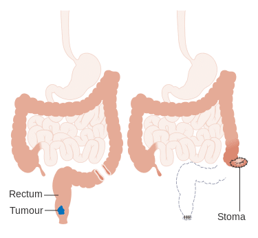 This article is for educational purposes only. It should not be used as a template for consenting patients. The person obtaining consent should have clear knowledge of the procedure and the potential risks and complications. Always refer to your local or national guidelines, and the applicable and appropriate law in your jurisdiction governing patient consent. Overview of Procedure Abdominoperineal Resections (APRs) are typically performed for very low rectal cancers (or for anal cancers refractory to chemoradiotherapy) or for severe perianal Crohn’s disease APRs have two separate stages to the procedure, with an abdominal approach (either open or laparoscopic) for the rectal dissection and end colostomy formation, and an perineal approach for the excision of the anus and completion of the rectal dissection. The entire specimen, formed of perineal skin, anal sphincters, rectum, and sigmoid colon, can then be extracted. Cancer Research UK, CC BY-SA 4.0 <https://creativecommons.org/licenses/by-sa/4.0>, via Wikimedia Commons Figure 1Schematic demonstrating an abdoperitoneal resection Complications Intra-Operative Complication Description of Complication Potential Ways to Reduce Risk Bleeding Ensure meticulous haemostasis during the procedure; careful dissection at the splenic flexure off the spleen Damage to local structures Structures at risk include small bowel, kidney + bladder + ureter, and ovaries + fallopian tubes + uterus Resection of other structures Local invasion of organs may require further visceral resection, including uterus and bladder Anaesthetic risks Includes damage to the teeth, throat and larynx, reaction to medications, nausea and vomiting, cardiovascular and respiratory complications Forms part of anaesthetic pre-assessment Early Complication Description of Complication Potential Ways to Reduce Risk Pain Optimal post-operative analgesia, including epidurals or rectus sheath catheters Infection Includes both wound infections and intra-abdominal collections, as well as respiratory or urinary tract infections post-operatively Intravenous antibiotics at induction, minimisation of faecal contamination during procedure, wound irrigation at closure Ileus Minimise contamination and bowel handling, correct any electrolyte abnormalities post-operatively Scarring Use of laparoscopic surgery if possible to result in a smaller abdominal scar Re-Operation Any complication may result in the return to theatre in the immediate post-operative period DVT or PE, Myocardial Infarction, Stroke, or Mortality As with any major surgery, whilst these events are uncommon, important to be aware of Adequate pre-optimisation and anaesthetic assessment, peri-operative prophylactic LMWH, high-dependency level care post-operatively Late Complication Description of complication Potential ways to reduce risk Adhesions Attempt laparoscopic approach if possible, avoid excess tissue disruption Stoma complications Includes stoma retraction, stenosis, or prolapse Incisional hernia, perineal hernia, or parastomal hernia Ensure fascia is closed tightly, using a small bites techniquePlacement of perineal mesh to prevent perineal hernia Sexual dysfunction Damage to pelvic nerves supplying the reproductive organs can be damaged during the rectal dissection, leading to sexual dysfunction Rate This Article