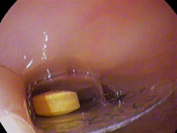 Foreign bodies (FBs) in the ear, nose, or throat are extremely common emergency presentations to ENT teams. Foreign bodies in the ear or nose are more common in children, people with learning difficulties, or those with psychiatric disorders. Oesophageal soft foreign bodies are seen in older people or in patients with oesophageal disorders. Whilst ear FBs do not tend to cause serious complications, aspirated or ingested FBs can lead to life-threatening airway compromise or oesophageal perforation if left unmanaged. Clinical Features The approach taken for a FB will depend on where the suspected foreign body is located. From the history, it is important to clarify the nature of the object*, the timing of ingestion or insertion, and any previous history of FB insertion. For ear foreign bodies, ask about any pain or discharge from the ear, and any associated hearing loss For nose foreign bodies, ask about issues with breathing and about any nasal discharge For ingested foreign bodies, clarify specifically the nature of the object, whether sharp (e.g. a fish bone) or soft (e.g. cooked meat); check for any dysphagia, including if the patient is able to swallow saliva *Organic materials (e.g. food or live objects) need to be removed more urgently than non-organic materials (e.g. plastic), as organic materials can cause tissue oedema and swelling, making it more difficult to remove with time; any live insects in the ear should be drowned in oil; Examination will be dependent on where the suspected foreign body is located. For the ear, direct visualisation of the FB is usually possible with otoscopy, whilst for the nose, use an age-appropriate Thudicum speculum (size 0 or 1 for children, 2 or 3 for adults) and a head-torch or otoscope is usually required. For FB in the pharynx, visual examination of oropharynx can be attempted using a Lack’s tongue depressor and head-torch. Palpate for points of tenderness on the neck (and assess whether this moves on swallowing), as well as for surgical emphysema. A flexible nasal endoscopy (FNE) is usually required as an adjunct for examination to visualise the pharynx, especially if not visible on initial assessment. Red Flags for Foreign Bodies The important red flags for any patient presenting with a foreign body include: Any signs of airway compromise, such as stridor, dysphonia, or drooling Any signs of oesophageal perforation, such as chest pain, back pain (mediastinitis), features of sepsis, or surgical emphysema Any history of button battery ingestion Differential Diagnosis There will usually be a clear history of foreign body ingestion, but the top differential for a suspected ingested FB is a food bolus, particularly if the patient is unsure whether they ate anything with bones. Occasionally, patients presenting with ear infections (particularly otitis externa) for several weeks may have placed a foreign body in the ear and may be unaware of it – cotton buds are common culprits. Insidious unilateral nasal discharge may be due to a foreign body, however if this occurs in an older patient, malignancy must be considered. Investigations No further investigations are usually required for nose and ear FBs. If there is a moderate clinical suspicion of an ingested foreign body, initially a plain film radiograph lateral soft-tissue neck can be performed, however this has poor sensitivity (around 57%) and specificity (around 76%). Plain film radiographs can be used to assess for the foreign body (if radio-opaque), the presence of surgical emphysema, any widening of retropharyngeal tissue (approximate measurements are >7mm at C2, >22mm at C7), or loss of cervical lordosis If plain films do not show anything, however clinical suspicion remains, a CT neck can be performed to further assess the area (sensitivity near 100%). Additionally, a plain film chest radiograph (CXR) can be performed to assess for any mediastinal widening, which is a red flag sign. Samir at English Wikipedia / CC BY (https://creativecommons.org/licenses/by/3.0) Figure 1A Plain Film Chest Radiograph of a Coin in the Oesophagus of a Child Management The urgency of FB removal depends entirely on the location and nature of the FB, and the patient’s clinical status. An A to E approach should always be employed on initial assessment. For an ingested FB, if there are any signs of airway compromise, proceed as for a patient with stridor. Button batteries can erode and cause irreversible caustic burns, therefore any button battery ingested must be removed immediately. Ears Ear foreign bodies can be removed using an array of instrumentation, such as microsuction with a Zoelner sucker, crocodile forceps, Jobson-Horne probes, or wax hooks If the FB is medial against the tympanic membrane or simply it cannot be removed, patients can be safely discharged home with a view to removing the foreign body under general anaesthesia (unless a button battery in which case immediate removal is needed), whilst organic materials will often need urgent removal. Nose Nose FB management is similar to that for ear FB, however emergency removal under GA should be performed if the patient is distressed or any signs of breathing difficulty. If unable to remove or unsure if the FB is present, consent and work-up for examination under anaesthesia and removal. Throat If the FB is visualised in the oropharynx and the patient can tolerate the procedure, removal may be attempted using Magill forceps and laryngoscope, with adequate local anaesthetic. Flexible nasendoscopy can be used to aid visualisation of the oropharynx whilst removing the foreign body. Otherwise, removal should be attempted with endoscopy under general anaesthesia (either via pharyngoscopy / laryngoscopy or rigid oesophagoscopy). The urgency of endoscopy is outlined below: Emergency endoscopy Any red flag signs Any sharp or long (>5cm) object in the oesophagus Urgent endoscopy (within 24 hours) Oesophageal obstruction (unable to swallow saliva) Blunt oeso