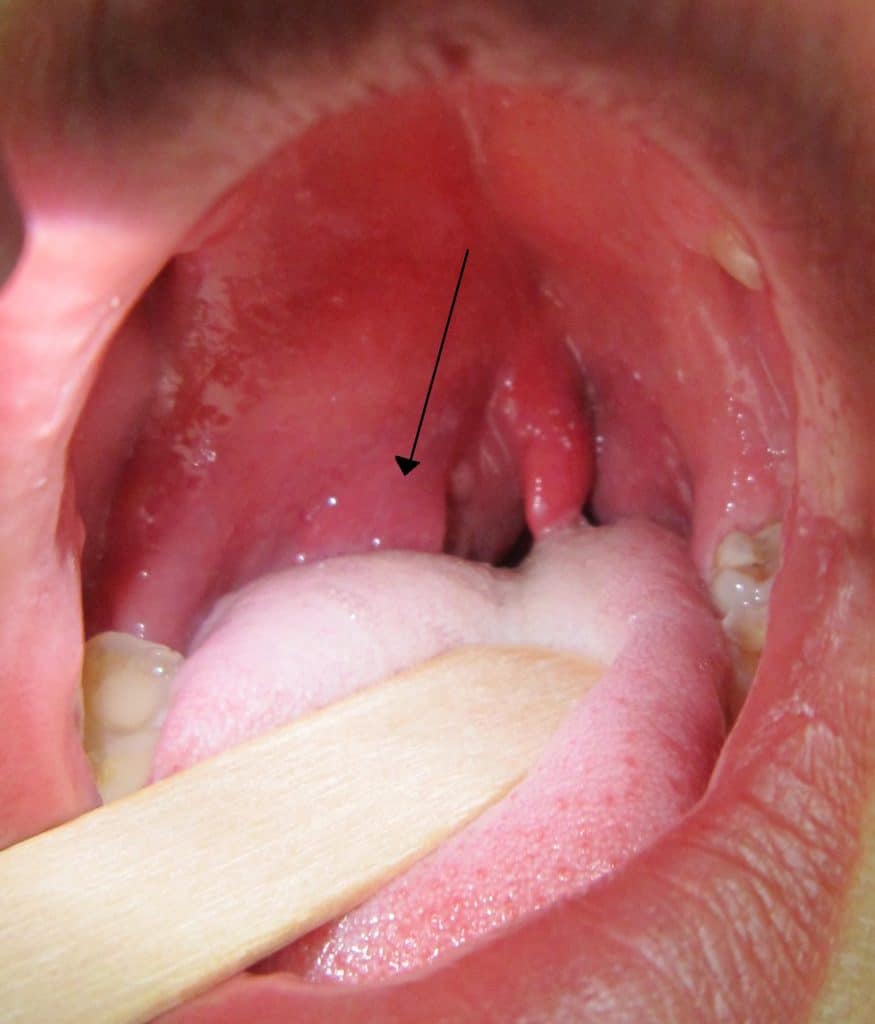 Tonsillitis refers to inflammation of the palatine tonsils, most commonly due to infection. Whilst most cases of tonsillitis are mild infective episodes and fully resolve with conservative measures or antibiotics, there are significant complications including deep neck space infections and potential airway compromise. Tonsillitis is a common presentation in primary care, most common in children and young adults. Recurrent tonsillitis has an incidence in the UK of around 100 per 1000 population a year. In this article, we shall look at the pathophysiology, clinical features and management of tonsillitis. Pathophysiology The palatine tonsils are located within the oropharynx as part of Waldeyer’s ring (Fig. 1). Waldeyer’s ring is a collection of lymphatic tissue located within the pharynx, forming a ringed arrangement, comprised of the pharyngeal tonsils (adenoids), tubal tonsils (x2), palatine tonsils (x2), and lingual tonsil. Tonsillitis is most caused by viral infections (50-80% of cases), including adenovirus, rhinovirus, influenza, and parainfluenza, or secondary to glandular fever, caused by Epstein-Barr virus (EBV). Bacterial causes account for approximately one third of cases (causative organisms include Streptococcus pyogenes, S. Aureus, and M. Catarrhalis). Adobe Stock, Licensed to TeachMeSeries Ltd Figure 1The four tonsils that comprise Waldeyer’s ring Clinical Features Tonsillitis presents with odynophagia or dysphagia, often with associated pyrexia, halitosis, or a “hot potato voice”. A cough or coryzal symptoms may also be present. On examination, the tonsils will appear erythematous and swollen (Fig. 2). When examining a patient with suspected tonsillitis, ensure to undertake an A to E assessment, as the airway can be at risk of compromise if the tonsils are significantly enlarged. By Michaelbladon at English Wikipedia / Public domain Figure 2A patient with tonsillitis, demonstrating erythematous & swollen tonsils with white exudate A purulent exudate* may be present (more common in bacterial cases), as well as anterior cervical lymphadenopathy, more prominently around the jugulodigastric nodes. Patient can present with trismus, where there is limited opening of the mouth – this is due to inflammation and painful spasm of the muscles of mastication. Any neck stiffness may suggest a deep neck space infection. *Patients with glandular fever often have very large, inflamed tonsils covered with white exudates, and prominent palpable cervical lymphadenopathy The Centor Criteria The Centor criteria are often used in primary care to assess for the likelihood of bacterial infection in tonsillitis Antibiotics should be considered if ≥2 criteria are met: History of pyrexia Tonsillar exudates No cough Tender anterior cervical lymphadenopathy The Centor criteria however is not suitable for emergency presentations and is rarely used in a hospital setting. The size of the tonsils can be graded according to Brodsky grading scale (Table 1); consider a peritonsillar abscess (quinsy, see below) in cases of peritonsillar swelling with deviation of the uvula. Grade Definition Grade 0 Tonsils in fossa Grade 1 Tonsils outside of fossa and occupy ≤25% of the oropharyngeal width Grade 2 Tonsils occupy 26-50% of the oropharyngeal width Grade 3 Tonsils occupy 51-75% of the oropharyngeal width Grade 4 Tonsils occupy > 75% of the oropharyngeal width Table 1 – The Brodsky Grading Scale for Tonsil Size Differential Diagnosis Important differentials to consider include head and neck malignancy, haematological malignancies, or deep space neck abscess, especially in chronic cases. Investigation Tonsillitis is often a clinical diagnosis; further investigations are only warranted in cases with suspected complications (see below). If the patient has hoarse voice/stridor, a flexible nasoendoscope is indicated to evaluate for any associated supraglottitis. For those who have presented to hospital, patients should have routine bloods (FBC, U&Es, CRPs, LFTs, and clotting) performed. Glandular fever should be checked with monospot test for EBV Consider a CT neck scan with intravenous contrast if a deep neck space infection is suspected, or if there are signs of parapharyngeal swelling during flexible nasoendoscopy. Adobe Stock, Licensed to TeachMeSeries Ltd Figure 3A patient with severe purulent tonsillitis Management Ensuring sufficient analgesia (normally achieved with Difflam spray and regular paracetamol ±NSAIDs) and hydration is the mainstay of treatment. Hospital admission may be required in uncomplicated cases who cannot swallow fluids after initial management. If the cause is thought to be bacterial, antibiotics should be prescribed* (typically penicillin-based, however follow local guidelines). Additionally, patients with glandular fever need to be advised not to participate in contact sports for 6 weeks, due to risk of splenic injury (as transient splenomegaly can occur in some cases). *Remember that starting amoxicillin in tonsillitis caused by EBV can result in a maculopapular rash developing. Tonsillectomy The definitive management for patients with recurrent tonsillitis is with surgical tonsillectomy. Typical indications for surgical excision of the tonsils include: ≥7 episodes in the preceding year, or ≥5 episodes in each of preceding 2 years, or ≥3 episodes in each of preceding 3 years Suspected malignancy or the presence of sleep apnoea Two previous peritonsillar abscesses The main complication from tonsillectomy is secondary bleeding (>24hrs post-op) from infection to the tonsillar bed, occurring in around 5% of cases and most at days 5-9 post-operatively. This can be treated medically with antibiotics and hydrogen peroxide mouth wash, however around 1% of patients will require surgical intervention for secondary haemorrhage post-tonsillectomy. Eleonoreo, CC BY-SA 3.0 <https://creativecommons.org/licenses/by-sa/3.0>, via Wikimedia Commons Figure 4Patient post-operative day