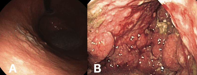 Gastric cancer is the fifth most commonly diagnosed cancer globally and is the second highest cause of cancer-related deaths, mostly due to patients presenting with advanced disease. The majority (>90%) of gastric cancers arise from the gastric mucosa as adenocarcinomas. The remainder are a mixture of connective tissue (i.e. GIST), lymphoid, or neuroendocrine malignancies. In this article, we shall look the risk factors, clinical features and management of a patient with gastric adenocarcinoma. CoRus13, CC BY-SA 4.0 <https://creativecommons.org/licenses/by-sa/4.0>, via Wikimedia Commons Figure 1A poorly differentiated gastric adenocarcinoma on histology Risk Factors In many countries, rates of gastric cancer have fallen in the past few decades (mainly due to an improved diet and treatment of Helicobacter Pylori infections), however it remains much more common in Far Eastern countries, such as Japan and Korea. The major risk factors for developing gastric cancer include male gender, H. pylori infection*, increasing age, smoking, and alcohol consumption. Other risk factors include salt in diet, positive family history, and pernicious anaemia. Helicobacter pylori and Gastric Cancer The risk of gastric cancer is nearly six times higher for H. Pylori-infected inidividuals, than for uninfected individuals. However, whilst around 60% of the world’s population are infected with H. Pylori, less than 0.5% will develop gastric adenocarcinoma. H. pylori infection causes acute gastritis (and then chronic gastritis), which can progress to metaplasia, to dysplasia, and then to cancer. While there is no clear evidence that H. Pylori eradication prevents gastric cancer, it does prevent the progression of precancerous lesions. Clinical Features The symptoms of gastric cancer are frequently vague and non-specific, with patients often unfortunately presenting at an advanced stage. The common presenting symptoms include dyspepsia (particularly if new-onset or not responsive to simple PPI treatment), dysphagia, early satiety, vomiting, or melena. Non-specific cancer symptoms (anorexia, weight loss, or anaemia) are markers of late stage disease. On examination, clinical signs are usually absent, especially in the early stages, however an epigastric mass may be felt in late stage disease. Troisier sign is the presence of a palpable left supraclavicular node (Virchow node) and is considered a sign of metastatic abdominal malignancy (typically gastric). Other signs of metastatic disease include hepatomegaly, ascites, jaundice, or acanthosis nigricans (Fig. 2). By Madhero88 [CC BY-SA 3.0], via Wikimedia Commonsons Figure 2Acanthosis nigricans, hyperpigmentation of the skin creases Differential Diagnosis Gastric cancer often presents with non-specific symptoms and consequently there are a wide range of potential differential diagnoses. Important diagnoses to consider include peptic ulcer disease, GORD, gallstone disease, and pancreatic cancer. Investigations Any patient presenting with clinical features of gastric cancer, including haematemesis or melena, will warrant urgent bloods, including a full blood count and liver function tests. However, the primary investigation of any suspected gastric cancer is an urgent upper GI endoscopy* (OGD), allowing for the direct visualisation of any malignancy present (Fig. 3) and subsequent biopsies taken as needed. Current NICE guidelines recommend referring for an urgent OGD for any patients presenting with new-onset dysphagia or aged >55 years presenting with weight loss and either upper abdominal pain, reflux, or dyspepsia. Biopsies from suspected gastric malignancies should be sent for: Histology – for classification and grading of any neoplasia present CLO test – for the presence of H. Pylori HER2/neu protein expression – this will allow for targeted monoclonal therapies if present *A CT scan may show thickening of the gastric wall but does not allow direct visualisation or biopsy, hence OGD is the only definitive means of diagnosis. Adapted from work by Samir [ CC-BY-SA-3.0)], via Wikimedia Commons Figure 3(A) Early stage gastric cancer (B) Linitis Plastica, whereby the malignancy has invaded most of the stomach and produced a ‘leather-bottle’ type appearance For staging and in order to plan treatment, all patients need a CT Chest-Abdomen-Pelvis scan* and a staging laparoscopy (to look for peritoneal metastases). The most commonly used staging system for gastric cancers is TNM staging. *As gastric cancers are not very “PET avid” (do not take up the radioactive tracer well), PET scans are rarely used in staging gastric cancers. Management All patients should be discussed at a specialist upper GI cancer multi-disciplinary team meeting for definitive management plans (including potential palliation decisions) Ensuring adequate nutrition is essential, therefore each patient should undergo nutritional status assessment and be reviewed by a dietician as necessary. Many patients need definitive nutritional support, both pre- or post-treatment, via a NG (nasogastric) or RIG (radiologically-inserted gastrostomy) tube. Curative Treatment The mainstay of curative treatment for gastric adenocarcinoma is surgery. Patients who are fit enough should be offered peri-operative chemotherapy (typically 3 cycles of neoadjuvant and 3 cycles of adjuvant). The aim of surgery is to achieve loco-regional control by removing the tumour and its local lymph nodes. The type of operation performed depends on the region of the malignancy: Proximal gastric cancers – total gastrectomy Distal gastric cancers (antrum or pylorus) – subtotal gastrectomy The distal pancreas and spleen may be removed as well if there is direct invasion of these organs and still a chance of a curative resection The most commonly used method in reconstructing the alimentary anatomy is the Roux-en-Y reconstruction as it gives the best functional result, in particular with less bile reflux. Post-gastrectomy, t
