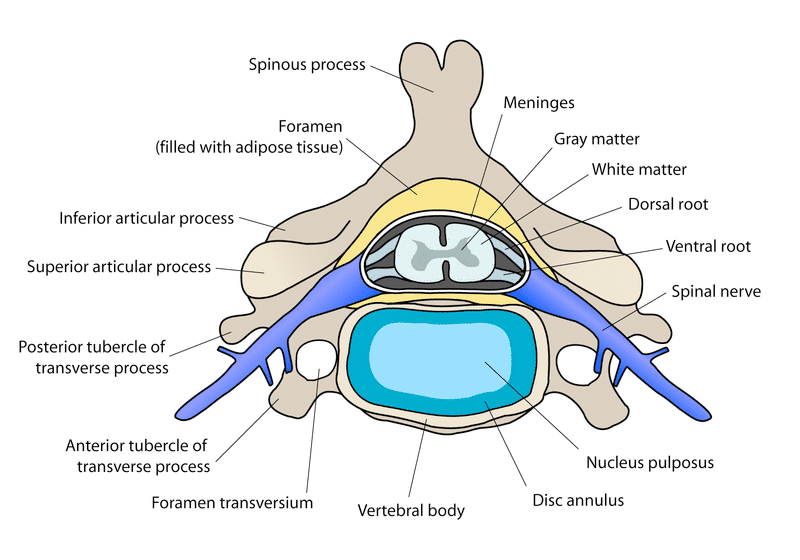 Spinal infections are rare, but often serious, whereby bacteria, fungi, or viruses are able to invade the spinal tissues. There are multiple potential sites of infection in the spine (Fig. 1), thus spinal infections form a spectrum of disease. The most frequently involved spinal segment is the lumbar spine (58%), followed by the thoracic spine (30%) Vertebral Osteomyelitis Infection of the vertebral body, also termed spondylitis, is the most common form of spinal infection. Subtypes include pyogenic vertebral osteomyelitis and granulomatous vertebral osteomyelitis (Potts’s disease, caused by tuberculosis). Discitis Isolated infection of the intervertebral disc (the nucleus pulposus), however can also spread to adjacent vertebral bodies (termed spondylodiscitis). The condition has a high prevalence in children. Epidural Abscess An epidural abscess develops in the space between the dura mater and vertebral column. They more commonly affect those in 5th to 7th decade of life and are more common in males. Subdural Abscess A subdural abscess develops in the space between the dura mater and arachnoid mater. The spinal subdural space has no barriers to prevent the spread of infection, so often spinal subdural infections can rapidly expand to involve multiple spinal levels. Spinal Cord Abscess Spinal cord abscesses, also termed intramedullary abscesses, are very rare infections that occur around the spinal cord. debivort, CC BY-SA 3.0 <http://creativecommons.org/licenses/by-sa/3.0/>, via Wikimedia Commons Figure 1Anatomical relationship between the vertebrae, intervertebral discs, meninges, and spinal cord Pathophysiology There are three main routes by which a pathogen can breach the spinal column, producing a spinal infection: Haematogenous spread – most common route, especially for vertebral osteomyelitis, due to rich vascular supply from the anterior spinal artery* Direct inoculation – Usually after trauma, spinal surgery, or spinal (such as a lumbar puncture or spinal anaesthesia) Adjacent spread – Infected adjacent tissue can allow infection to spread throughout the spine, however this is less common The most common organisms in spinal infections are bacterial, mainly S. aureus (55–80% of cases) and E. coli. *This supplies the anterior 2/3rd of the spinal cord and consequently the anterior portion of the spine is where infections most commonly originate Hospital for Sick Children, Toronto, CC BY-SA 3.0 <http://creativecommons.org/licenses/by-sa/3.0/>, via Wikimedia Commons Figure 2MRI scan showing discitis in a 2yr old patient Risk Factors The main risk factors for spinal infections include intravenous drug use (due to resultant haematogenous spread of pathogens), immunosuppression (including steroid and immunosuppressant use), malignancy, diabetes mellitus, and recent spinal surgery (via direct inoculation) Clinical Features The main symptom patients present with for all types of spinal infection is back pain. This is often worse on movement and worse at night. Associated features can include pyrexia and radicular signs, progressing to weakness or paralysis in severe cases. On examination, patients will be focally tender at the level of infection. In patients reporting neurological compromise, a detailed upper and lower neurological examination, with specific focus on motor and sensory aspects is crucial to elicit the extent of the infected portion of the spine. Ensure to check for features of spinal cord compression and cauda equina syndrome. Always check for other potential sources of infection that may have seeded to cause any spinal infection (e.g. infective endocarditis) Differential Diagnosis For patients presenting with acute back pain, the main differentials to consider include intervertebral disc prolapse, spinal fracture, musculoskeletal injury, or spinal malignancies. Investigations Laboratory Tests Any patient suspected of having a spinal infection should have routine blood tests, including FBC, CRP, U&Es, LFTs, and clotting studies. Due to haematogenous spread, blood cultures should also be performed. Imaging Imaging is necessary to pinpoint the location and extent of a lesion. Detection of spondylitis/spondylodiscitis may be difficult or impossible during early infection, especially plain radiographs. The gold standard investigation to visualise spinal infections is MRI imaging with contrast. MRI can accurately identify the location and type of spinal infection (Fig. 2), and most importantly can determine the involvement of the central canal and spinal cord. CT imaging cannot show soft tissue pathology as well as MRI imaging, however can be used to determine the extent of any bony involvement (Fig. 3). James Heilman, MD, CC BY-SA 3.0 <https://creativecommons.org/licenses/by-sa/3.0>, via Wikimedia Commons Figure 3CT imaging showing associated bone involvement (circled) in a case of discitis Biopsy In confirmed cases, CT-guided biopsy is recommended where feasible to obtain samples for both microbiology and histology. This can further help with choice antibiotic, once pathogen sensitivities have been determined. Management Spinal infections often require long-term intravenous antibiotic (or antifungal) therapy, which often equates to an extended hospitalisation time for the patient. In approximately 90% of cases, conservative treatment is successful in achieving these goals. Immobilisation may be recommended when there is significant pain or in cases of spinal instability. Surgical Intervention Surgery may be indicated when there is evidence of significant bone destruction (causing spinal instability), the presence of neurological deficits (including spinal cord compression), or a poor response to antimicrobial treatment The primary goals of surgery in spinal infections are to debride the infected tissue and drain residual pus, and restore spinal stability where possible. Response to treatment is usually assessed by looking at the patient’s symptoms, inflammatory ma
