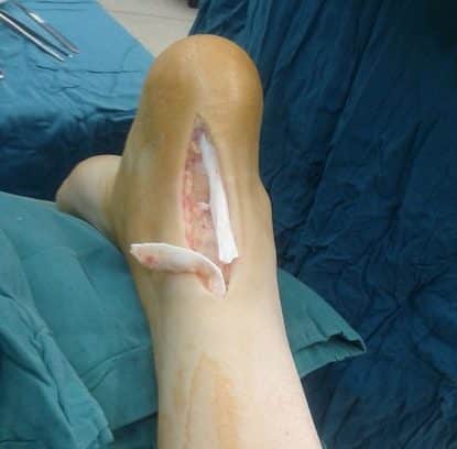 Achilles tendonitis is inflammation of the Achilles (calcaneal) tendon. It affects around 2 adults per 1000 population, however is more prevalent in those who engage in high-intensity activities which chronically overload the tendon, such as running and jumping. Achilles tendonitis lead to Achilles tendon rupture, whereby the tendon ruptures and resulting in complete loss of function of the ipsilateral calf muscle. Approximately 80% of all ruptures occur during athletic activity. In this article, we shall look at the pathophysiology, clinical features, and management of both Achilles tendonitis and tendon rupture. By TeachMeSeries Ltd (2022) Figure 1Medial view of the tendons of the posterior leg Pathophysiology The Achilles tendon unites the gastrocnemius, soleus, and plantaris muscles. It inserts in to the calcaneus and produces plantarflexion of the ankle. Repetitive action of the tendon results in microtears leading to localised inflammation. Over time the tendon becomes thickened, fibrotic, and loses elasticity with repeated episodes. Achilles tendon rupture occurs when a substantial sudden force is applied across the tendon, often in the context of existing Achilles tendonitis. The precipitating event could be a movement such as a sudden jump or rapid change in direction whilst running. Risk Factors The classical case of tendonitis or rupture occurs in an unfit individual who has a sudden increase in exercise frequency. Other risk factors include poor footwear choice, male gender, obesity, or recent fluoroquinolone use (for tendon rupture). Clinical Features Tendonitis Achilles tendonitis presents with a gradual onset of pain and stiffness in the posterior ankle, often worse with movement. This can usually be improved with physiotherapy or heat application. On examination, there is tenderness over the tendon on palpation (usually worse 2-6cm above its insertion site), with pressure over the tendon with your fingers reproducing this pain. Rupture In cases of tendon rupture, patients will often describe sudden-onset severe pain in the posterior calf, accompanied with an audible popping sound and a feeling that something “went”. On examination, there will be a marked loss of power of ankle plantarflexion (the peroneal tendons contribute to plantarflexion so this movement remains, but significantly weakened). The most commonly used indicators of a clinical tendon rupture are Simmonds test (below) and a palpable “step” in the Achilles tendon. Grook Da Oger [CC BY-SA 3.0 (https://creativecommons.org/licenses/by-sa/3.0)], from Wikimedia Commons Figure 2Achilles tendon rupture, demonstrating complete loss of plantarflexion at the ankle Simmonds’ Test Simmonds’ test can be used to assess for potential Achilles tendon rupture. With the patient kneeling on a chair, with the affected ankle hanging off the edge of the chair, squeeze the affected calf. If the Achilles tendon is in continuity, the foot will plantarflex; however, plantarflexion is absent when the tendon is ruptured. Differential Diagnosis The main differential diagnoses to consider include Achilles tendonitis is ankle sprain, calcaneal fracture, tibial fracture, or ankle osteoarthritis. For tendon rupture, the main differential diagnoses are ankle fracture or ankle sprain. Investigations Both Achilles tendonitis and tendon rupture are typically clinical diagnoses; however, where there is clinical equipoise, an ultrasound scan may be required. This is particularly useful to differentiate complete and partial tears. Management Tendonitis Acute tendonitis can be treated with supportive measures. Patients are encouraged to stop the precipitating exercise, ice the area, and use anti-inflammatory medication regularly. Cases of chronic tendonitis require rehabilitation and physiotherapy; slow controlled movement against resistance has been shown to increase long term tendon strength and reduced rates of recurrent tendonitis. Rupture Initial management for acute partial-thickness or full-thickness Achilles tendon rupture (<2 weeks) requires analgesia and immobilisation, with the ankle splinted in a plaster in full equinus* (i.e. with the ankle and toes maximally pointed). They are then provided with crutches and not allowed to weight bear. *It is worth noting that more units are now switching from plaster immobilisation to using a weight-bearing orthosis (a ‘moonboot’), with a large heel raise insert; this achieves the same position as described above (equinus), but the patient can fully weight bear immediately CC0 Creative Commons Figure 3Complete rupture of the Achilles tendon, requiring surgical repair This position is held for 2 weeks. Following this, the ankle is brought in to ‘semi-equinus’, and held for a further 4 weeks. After this, the ankle is brought in to the neutral position and held again for 4 weeks. Delayed presentations (>2 weeks) or cases of re-rupture require surgical fixation with an end-to-end tendon repair. Key Points Achilles tendonitis is inflammation of the Achilles tendon, with Achilles tendon rupture often sequelae from Achilles tendonitis Achilles tendonitis presents with a gradual onset of pain and stiffness in the tendon area, often worse with movement Achilles tendon rupture often presents with a sudden-onset severe pain in the posterior calf, with a loss of ankle plantarflexion Diagnosis is often clinical and treatment depends on severity and duration of the condition Rate This Article
