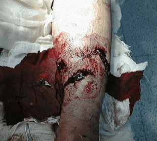 Open fractures are a common presentation to A&E, and require urgent assessment and management by the orthopaedic team. Whilst most of these injuries can be safely managed on next day emergency lists, there are instances where emergency out-of-hours treatment is required. Left untreated, open fractures are associated with high rates of morbidity and mortality. In this article, we look at the classification, investigations and management of open fractures. Pathophysiology A fracture is ‘open’ when there is a direct communication between the fracture site and the external environment. This is most often through the skin – however, pelvic fractures may be internally open, having penetrated in to the vagina or rectum. Fracture may become open by either an “in-to-out” injury, whereby the sharp bone ends penetrate the skin from beneath, or an “out-to-in” injury, whereby a high energy injury (e.g. ballistic injury or a direct blow) penetrates the skin, traumatising the subtending soft tissues and bone. Whilst any fracture can become open, the most common fractures are tibial, phalangeal, forearm, ankle, and metacarpal. The outcomes of an open fracture can be considered in the following way: Skin – this can range from a very small wound to significant tissue loss, whereby coverage will not be achieved without the aid of plastics surgery (i.e. skin grafting or a local/free flap) Soft tissues – this can also range from very little tissue devitalisation to significant muscle/tendon/ligament loss requiring reconstructive surgery Neurovascular injury – nerves and vessels may be compressed due to limb deformity, go in to arteriospasm, develop and intimal dissection or be transected altogether Infection – the rate of infection is very high following open fracture, due to direct contamination, reduced vascularity, systemic compromise (such as following major trauma) and need for insertion of metalwork for fracture stabilisation By Doncovska [CC BY-SA 3.0 (https://creativecommons.org/licenses/by-sa/3.0)], from Wikimedia Commons Figure 1A Gustilo-Anderson Type 2 Fracture Clinical Features Initial resuscitation and suitable management is essential, especially in cases of major trauma. Patients will present with pain, swelling, and deformity, with an overlying wound or punctum (in severe cases, the bone end may be visible protruding from the wound). On examination, ensure to check neurovascular status and overlying skin for any skin or tissue loss (Fig. 1). Any evidence of contamination should be assessed for and documented – marine, agricultural, and sewage contamination is of the highest importance. The need for plastic surgery input should be identified early, to allow both specialties to be present at the first operation and therefore avoid multiple procedures. Classification of Open Fractures The Gustilo-Anderson classification can be used to classify open fractures Type 1: <1cm wound and clean Type 2: 1-10cm wound and clean Type 3A: >10cm wound and high-energy, but with adequate soft tissue coverage Type 3B: >10cm wound and high-energy, but with inadequate soft tissue coverage Type 3C: All injuries with vascular injury A simple summary in how this can help to guide management is: 3A can be managed by orthopaedics alone, 3B requires plastics input, and 3C requires vascular input Investigation All patients with suspected open fractures require basic blood tests, including a clotting screen and a Group & Save. A plain film radiograph of the affected area(s) will be required (Fig. 2). For very comminuted or complex fracture patterns, a CT-scan can often aid management. By Th. Zimmermann [CC BY-SA 4.0 (https://creativecommons.org/licenses/by-sa/4.0)], via Wikimedia Commons Figure 2A radiograph of an Open Galeazzi Fracture Management Following suitable resuscitation and stabilisation, urgent realignment and splinting of the limb is warranted. Ensure to re-assess and document the neurovascular status following any realignment or reduction. Broad-spectrum antibiotic cover should be administered, as per local guidelines, and a tetanus vaccination is required if the patient is not fully up-to-date with their vaccination. Photograph the wound (Fig. 3) and remove any gross debris. However, an out-of-theatre washout is not indicated, instead the wound should then be dressed with a saline-soaked gauze. By آرمین [Public domain], from Wikimedia Commons Figure 3Ensure to photograph any open fracture, to avoid repeated uncovering of dressings for inspection Definitive Management Definitive surgical management requires debridement of the wound and the fracture site, removing all devitalised tissue present. This should happen either immediately if contaminated with marine, agricultural, or sewage material, or <12-24 hours in all other cases Ensure the wound is washed out with copious volumes of saline. Ensure definitive skeletal stabilisation; if soft tissue coverage is required, this should happen within 72 hours, or as guided by plastic surgeon advice. If there is vascular compromise, this needs immediate surgical exploration by vascular surgery. Key Points Open fractures are associated with high rates of morbidity and mortality The most common fractures that are open are tibial, phalangeal, forearm, ankle, and metacarpal Check the overlying area for skin breakdown or tissue loss All patients with open fractures need antibiotic cover and up-to-date tetanus vaccination Timely surgical management, with input from plastic and vascular surgery as required, will ensure optimal outcomes Do you think you’re ready? Take the quiz below Pro Feature - Quiz Open Fractures Question 1 of 3 Submitting... Skip Next Rate question: You scored 0% Skipped: 0/3 Keep your streak going Unlock the full question bank You’ve made a great start. Continue with over 1,200 MRCS-style MCQs, two full mock papers, and ad-free revision with TeachMeSurgery Pro. Continue with Pro Rate This Article
