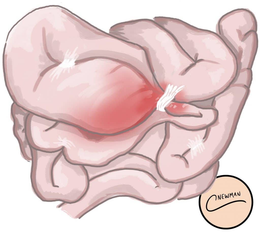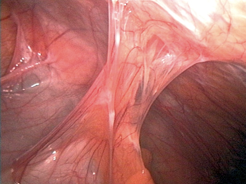 Adhesions are fibrous bands of scar tissue. Many occur secondary to previous surgery or intra-abdominal inflammation (particularly pelvic)*, however they can also be congenital. They are one of the main causes of small bowel obstruction, accounting for around 60% of cases, and are also associated with female infertility and chronic pelvic pain. *Meta-analysis data has shown showed the incidence of small bowel obstruction was greatest in lower gastrointestinal surgery and paediatric surgery, and the lowest in upper gastrointestinal surgery and urological surgery. By TeachMeSeries Ltd (2025) Figure 1Bowel adhesions, as seen on laparoscopy, causing a small bowel obstruction Clinical Features It is important to note that adhesions themselves are generally asymptomatic. Rather, it is the effect of the adhesions that present with clinical features (such as that of obstruction, infertility, or chronic pelvic pain). By Thomas Newman, TeachMeSurgery [CC-BY-NC-ND 4.0] Figure 2Adhesions resulting in a small bowel obstruction Investigations and Management Much of the work-up required for suspected bowel adhesions is directed to that of the subsequent pathology that has developed. For those in uncomplicated bowel obstruction, conservative management should be attempted initially, the mainstay of which is tube decompression Additionally, the patient should be kept nil-by-mouth, prescribed intravenous fluids, and provided with adequate analgesia. By James Heilman, MD (Own work) [CC BY-SA 3.0], via Wikimedia Commons Figure 2Small bowel obstruction, as seen on abdominal radiograph Surgical Management Surgical intervention in adhesional bowel obstruction is warranted* in any patient with clinical features of ischaemia or perforation, or failed conservative treatment. Adhesiolysis should be limited to only the adhesions causing the mechanical obstruction or strangulation, in an aim to reduce risk of recurrent adhesional disease. Whilst open management is still performed in many cases, laparoscopic management for bowel adhesions is becoming the mainstay, due to improved post-operative outcomes. Often technically challenging due to the distension of the bowel (and therefore increased risk of iatrogenic injuries to the bowel), consequently there should be a low threshold for conversion to open approach in extensive disease. *In patients that require surgical management, early intervention is preferable, as a recent study found that delay to operation for bowel adhesions had increased rates of post-operative complications, bowel resection, prolonged length of stay, and mortality. Prevention There are no devices currently able to totally prevent adhesion formation after abdominal surgery. Correct surgical technical and reducing intraperitoneal organ handling remain the mainstay of reducing bowel adhesion formation. Key Points Bowel adhesions are a major cause of small bowel obstruction, accounting for around 60% of cases For those warranting surgical management, adhesiolysis can be performed laparoscopically or via an open approach Do you think you’re ready? Take the quiz below Pro Feature - Quiz Bowel Adhesions Question 1 of 2 Submitting... Skip Next Rate question: You scored 0% Skipped: 0/2 Keep your streak going Unlock the full question bank You’ve made a great start. Continue with over 1,200 MRCS-style MCQs, two full mock papers, and ad-free revision with TeachMeSurgery Pro. Continue with Pro Rate This Article