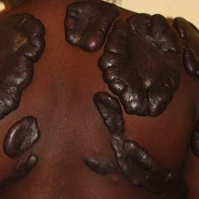 A keloid is an abnormal proliferation of scar tissue which forms at the site of injury, rises above the skin level, projects beyond original wound margins, and does not regress. Keloid formation affects both men and women equally, with the highest incidence occurring between the ages of 20 and 30. In this article, we shall look at the pathophysiology, clinical features and management of keloid scarring. By Htirgan (Own work) [CC BY-SA 3.0], via Wikimedia Commons Figure 1Large keloids covering a patient’s shoulder and back Pathophysiology In normal wound healing, there is a balance between new tissue biosynthesis and tissue degradation. This is achieved through the processes of apoptosis and remodelling of the extracellular matrix (ECM). During keloid formation, there is a prolonged inflammatory phase (due to immune cell infiltration into the scar tissue). This contributes to excess fibroblast activity and increased deposition of ECM, resulting in the tissue projecting beyond the original wound margin. Risk Factors The major risk factors for keloid formation are: Ethnicity – most common in Black African or Caribbean and Asian populations Age – the highest incidence occurring between 20-30yrs Cause of injury – burns carry the highest risk Anatomical site – most commonly occur in scars on the ear lobe, shoulders, and sternal notch Previous keloid formation Clinical Features Aside from their characteristic visual appearance, keloids fortunately do not normally cause many other symptoms. A small proportion of patients may experience pain, itching, or burning in the scar tissue. Keloid scars are raised above the skin around them and can take on the appearance of a dome-shape, extending beyond the original wound margin. They are often shiny and hairless, with varying consistency. Early lesions are often erythematous, before becoming brownish and red, eventually turning pale as they age. By Htirgan (Own work) [CC BY-SA 3.0], via Wikimedia Commons Figure 2Aside from the aesthetic problems, keloids are rarely symptomatic for patients The Vancouver Scar Scale The Vancouver Scar Scale can be used to quantify features of any scar, including keloids. It is particularly useful in monitoring the effectiveness of treatment. It was initially designed for the assessment of burns, but has been found to be clinically useful in evaluating a wide range of scar types. Score Pigmentation Vascularity Pliability Height 0 Normal Normal Normal Normal 1 Hypopigmentation Pink Supple <2mm 2 Hyperpigmentation Pink to Red Yielding 2-5mm 3 Red Firm >5mm 4 Red to Purple Banding 5 Purple Contracture Differential Diagnosis The main differential diagnosis for a keloid scar is hypertrophic scarring, hyperprolific areas of scar tissue that keep within the confines of the wound margin (the main clinical features of each are compared in Table 1). Other (rarer) diagnoses to consider are dermatofibroma or dermatofibrosarcoma protuberans. Hypertrophic Scars Keloid Scars Remain within the confines of the wound Project beyond original wound margins Usual regression over a period of time Do not regress over time Improves with surgical intervention Outcomes worse with surgical intervention Has no association with skin colour Associated in individuals with a darker skin tone Develops soon after injury May develop several months after initial injury Does not form spontaneously May form spontaneously without prior injury Develop in wound locations under high tension, such as shoulders, neck, knees and ankles Occur anywhere on the body but predominately on earlobes, upper arms, sternal notch, and deltoids Table 1 – Comparison of hypertrophic and keloid scars. Investigations Diagnosis is usually made on clinical findings, as described above. Biopsy of a lesion is rarely required. Management A variety of management options are available for keloids. Surgical excision of keloids is rarely performed. It has poor results, with recurrence rates between 40-100%. Surgical excision is thought to stimulate collagen synthesis – which results in the regrowth of a larger keloid. Non-Surgical Management There are a number of options for the treatment of keloids, which are typically more effective when used in combination with each other: Intralesional steroids are the most widely used treatment for keloids, acting as an anti-inflammatory agent that inhibits the fibroblast glucocorticoid receptors; this in turn downregulates the proliferation of fibroblasts and inhibits collagen synthesis Silicone gel has also been shown to be an effective management. This can be either as a topical gel or as an elastic sheet (wrapped around the keloid scar for at least 12 hours per day) Radiation therapy reduces the recurrence of keloids, especially as an adjunct therapy; naturally, radiation therapy runs the theoretical risk of inducing malignancy, which has limited its potential use Key Points A keloid is an abnormal proliferation of scar tissue which forms at the site of injury Aside from their aesthetic appearance, keloids are rarely symptomatic Diagnosis is usually based on clinical findings, the main differential diagnosis is hypertrophic scarring Whilst several management options are available, surgical excision of keloids is rarely performed due to risk of recurrence Do you think you’re ready? Take the quiz below Pro Feature - Quiz Keloids Question 1 of 3 Submitting... Skip Next Rate question: You scored 0% Skipped: 0/3 Keep your streak going Unlock the full question bank You’ve made a great start. Continue with over 1,200 MRCS-style MCQs, two full mock papers, and ad-free revision with TeachMeSurgery Pro. Continue with Pro Rate This Article