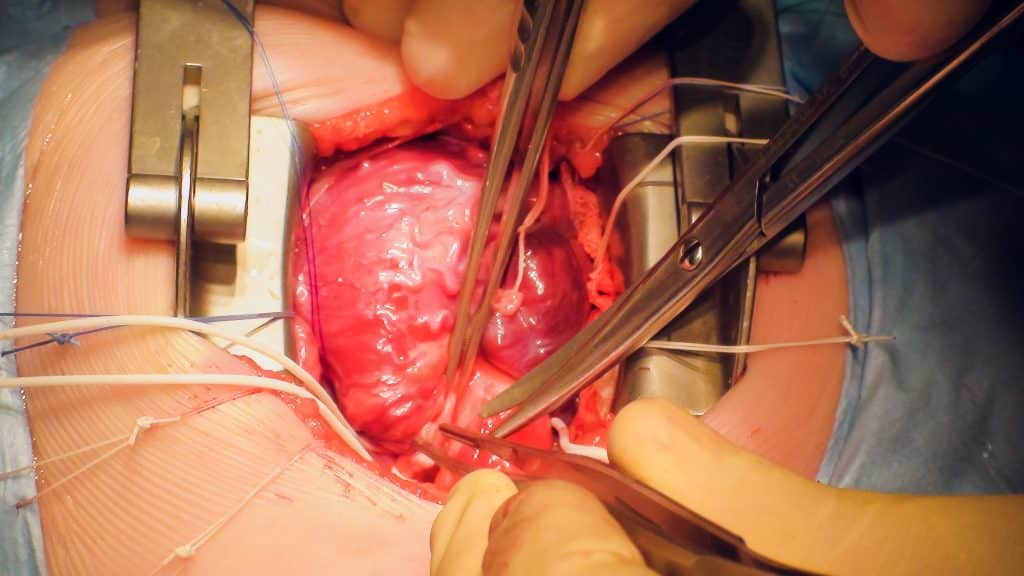 In appropriate patients, heart transplantation is the final treatment option in end-stage heart failure. The demand for donor hearts from deceased donors still outweighs the supply, however the number of heart transplants performed has slowly increased in a few high-income countries in recent years. In the UK, there are approximately 200 heart or heart and lung transplants a year. Patients awaiting their transplants are managed using bridges to transplantation devices, such as ventricular assist devices (VAD) and extracorporeal membrane oxygenation (ECMO). By TeachMeSeries Ltd (2022) Figure 1Anterior view of the heart and coronary vessels Indications Heart transplantation is indicated in patients with end-stage heart failure, which can be secondary to ischaemic heart disease, valvular heart disease, cardiomyopathy (dilated, restrictive, or ischaemic), or congenital heart disease. Several criteria must be met for patients to be deemed suitable for a donor heart*. Most importantly, patients must be deemed to have refractory disease, such as severe heart failure persisting despite maximal medical treatment or severe coronary artery disease not amenable to interventional or surgical revascularisation. Contraindications for heart transplantation include irreversible pulmonary hypertension, active systemic infection (such a tuberculosis) or active malignancy, or high BMI (>35) Risk factors to be considered for worse outcomes of heart transplantation include advancing age (over the age of 60yrs), previous cardiac surgery, ex-smoker, and frailty. *They should also have a good VO2 max and an estimated 1yr survival >80% Surgical Techniques Donor hearts come exclusively from deceased donors. The prospective donors are matched using blood group, HLA status, and heart size. Donor hearts come exclusively from deceased donors, with the prospective donors matched using blood group, HLA status, and heart size. Heart transplants can occur alone or (rarely) as a combined procedure with a heart and lung transplantation Donor Procedure Donor hearts are normally retrieved via a median sternotomy approach. After sternotomy, the heart and lungs are inspected and their function is tested. If abdominal organs are also being retrieved, a laparotomy is also performed to allow for the relevant abdominal viscera to be inspected*. The donor is infused with heparin systemically and the vena cava are divided, first the superior vena cava and then the inferior vena cava, emptying the right side of the heart. The pulmonary vein is divided, which empties the left side of the heart. At this point a cross-clamp is applied to the distal part of the ascending aorta, above the site for aortic cannulation. Cold cardioplegia solution is administered and the donor heart is arrested, and ice is applied to the heart to minimise metabolic activity. If the lungs are being retrieved simultaneously, the left atrium is divided to provide adequate tissue for implantation with the lungs. The ascending aorta is then divided just before the brachiocephalic artery and then pulmonary artery is divided at the point of bifurcation, which then frees the heart. Once the heart is dissected from the donor structures, it can either be transported using static cold storage or using ex-vivo systems. *Once all retrieval teams are in agreement, the aorta is cross-clamped for the heart and lungs to be retrieved, before the abdominal viscera are then retrieved Adobe Stock, Licensed to TeachMeSeries Ltd Figure 2A benched donor heart, about to be transplanted to the recipient Recipient Procedure Once the donor heart is procured, the recipient will undergo a median sternotomy and the diseased heart is exposed. The recipient will be put onto cardiopulmonary bypass and the aortic cross-clamp will be applied. The diseased heart will be excised just above the point at which the aorta meets the aortic valve and the pulmonary artery meets the pulmonary valve, and large tissue cuffs are preserved of the superior vena cava, inferior vena cava, and pulmonary veins. Commonly the outflow tracts are anastomosed first, the aorta then the pulmonary artery, and then the superior and inferior vena cava can be anastomosed. The patient is then weaned from cardiopulmonary bypass and may require inotropic support and epicardial pacing wires. Protamine is administered to reverse the heparin effects and once haemostasis is achieved the chest is closed and drains left in-situ. Adobe Stock, Licensed to TeachMeSeries Ltd Figure 3The recipient procedure for a heart transplant Complications Early Patients must be monitored for post-operative bleeding in the immediate post-operative period. Due to immunosuppressed status, post-operative infections are also common. In the initial days following the procedure, patients are at risk of reperfusion injury and primary graft dysfunction. Ensuring good cardiac output is the priority in the initial phase, however often ECMO may be required during this period. Late Heart transplant patients are at risk of cardiac allograft vasculopathy (narrowing of the coronary arteries), which typically occurs after the first 6 months. These patients require frequent follow-up angiography.* Transplant patients require life-long immunosuppression, which is associated with increase risk of recurrent or atypical infections, nephrotoxicity, and certain malignancies (including post-transplant lymphoproliferative disorder). Many patients will require temporary pacing post-operatively, and some go on to develop severe bradyarrhythmia requiring permanent pacemaker insertion (bradyarrhythmia may also be an early sign of rejection and must be investigated as such). *The lack of autonomic innervation means patients are unable to always feel the symptoms of ischaemic heart disease Key Points Heart transplantation is the final treatment option in end-stage heart failure Indications include ischaemic heart disease, valvular heart disease, cardiomyopathy (dilated, restrictive