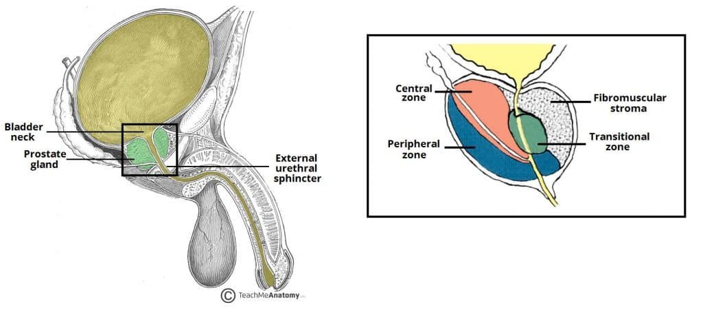 Prostatitis is inflammation of the prostate gland. It is the most common urological problem in men under 50 years old, with an overall prevalence of 2.2-9.7%. Prostatitis is comprised of acute bacterial prostatitis, chronic bacterial prostatitis, nonbacterial prostatitis, and prostatodynia*. In this article, we shall predominantly focus on acute bacterial prostatitis, discussing its clinical features, investigations, and management. *The National Institute of Health classification involves Categories I, II, IIIA, IIIB and IV, all of which near identically correlate to the above classification. By TeachMeSeries Ltd (2020) Figure 1The anatomical position and zones of the prostate Pathophysiology Most cases of acute bacterial prostatitis are caused by ascending urethral infection, although occasionally direct or lymphatic spread from the rectum or hematogenous spread via bacterial sepsis can be the cause. Causative organisms include E. Coli (most common), Enterobacter, Serratia, Pseudomonas, and Proteus species. Sexually transmitted infections, such as Chlamydia or Gonorrhoea, are a rare cause. Chronic bacterial prostatitis is chronic bacterial infection of the prostate with or without prostatitis symptoms and is thought to be the sequelae of inadequately treated acute prostatitis. Risk Factors For acute bacterial prostatitis: Indwelling catheters Phimosis or urethral stricture Recent surgery, including cystoscopy or transrectal prostate biopsy Immunocompromised In addition, for chronic prostatitis: Intraprostatic ductal reflux Neuroendocrine dysfunction Dysfunctional bladder Clinical Features Acute bacterial prostatitis can present with lower urinary tract symptoms (LUTS), features of systemic infection (including pyrexia), perineal or suprapubic pain, or urethral discharge. On rectal examination, there is often a very tender and boggy prostate. Associated inguinal lymphadenopathy may also be present. Chronic prostatitis should be suspected in men who complain of pelvic pain or discomfort for at least 3 months (Prostatodynia), alongside LUTS; the perineum is the most common site for pain, however pain can occur in the suprapubic region, lower back, or rectum. Investigations Urine culture are the first line investigations* in the acute setting for suspected cases. Antibiotic therapy can be guided from any sensitivities obtained. *Previously, the prostate massage was utilised to obtain suitable samples for culture in cases of suspected prostatitis however this is no longer recommended as part of routine practice Nephron / CC BY-SA (https://creativecommons.org/licenses/by-sa/3.0) Figure 2Histology demonstrating acute inflammation of prostate tissue Other investigations* to consider include an STI screen and routine bloods, including FBC, CRP, and U&Es (prostate specific antigen (PSA) will often be elevated in cases, therefore is not routinely performed). Further investigations are only preformed in the secondary care setting and are usually indicated when initial therapy has failed or to investigate for potential underlying causes. In patients who failed to respond to antibiotic therapy, other pathologies such as prostate abscess need to be ruled out using transrectal prostatic ultrasound (TRUS) or CT imaging. *Meares and Stamey’s 4 cups urinary sediment were previously used, but due to poor practicality and time consumption, they are now rarely used in current practice. Management The mainstay of the management of acute bacterial prostatitis is via prolonged antibiotic treatment, typically a quinolone due to their good penetration into the prostate. Ensure suitable analgesia (typically paracetamol and NSAIDs) is also provided. Alpha blockers or 5a-redictase inhibitors can be used as second line therapy, especially for chronic prostatitis cases. For patients that are considered to be severely ill or are unable to tolerate oral antibiotics, then admission to hospital may be necessary. Specialist input may be required those patients with diabetes mellitus, long-term catheter, immunocompromised, or suspected prostatic abscess (Fig. 3). Those with pre-existing urological condition (e.g. BPH) may warrant referral to urology following the treatment of the acute infection for further management. By Thomas Newman, TeachMeSurgery [CC-BY-NC-ND 4.0] Figure 3Illustration of patient with prostatitis and a developing abscess Further Management When managing chronic prostatitis, it should be explained to the patient that the cause is not always understood and therefore can be difficult to treat. Management is primarily focused on symptom control (oral analgesia with stool softeners if any painful defecation). Significant LUTS can be managed well with a 4-6-week trial of an alpha blocker (e.g. doxazosin, terazosin, tamsulosin). A 6-week course of antibiotics may also be warranted if symptoms have been present for less than 6 months. If symptoms persist after urological treatment and management, consider referral to a chronic pain specialist. For CPPS, psychological therapies are an additional therapeutic option. An MDT approach (urologists, pain specialists, specialist physiotherapists, GPs, cognitive behavioural therapists, sexual health specialists) is recommended for optimal outcome. Key Points Prostatitis is inflammation of the prostate gland Patients with acute bacterial prostatitis can present with LUTS, pyrexia, perineal or suprapubic pain, or urethral discharge Diagnosis is though clinical features and microbiology, although imaging can aid too Mainstay of treatment is through prolonged antibiotic treatment and analgesia Do you think you’re ready? Take the quiz below Pro Feature - Quiz Prostatitis Question 1 of 3 Submitting... Skip Next Rate question: You scored 0% Skipped: 0/3 Keep your streak going Unlock the full question bank You’ve made a great start. Continue with over 1,200 MRCS-style MCQs, two full mock papers, and ad-free revision with TeachMeSurgery Pro. Continue with Pro Rate This Ar